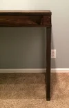 A long skinny table work perfect along the wall. We made the legs to attached to the table deck. Everything is left as is, a fine farm/industrial look.