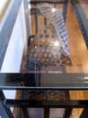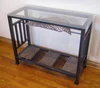 Memory tableThe centerpiece of this table is a rusted chunk of perforated steel. This artifact is from a family farm. The client remembers the steel as a place where their Dad stopped to rest and clean his boots. We took this relic and built a functional table around it. A glass top is perfect for revealing the floating steel. Wood from their old barn is used as shelving below.