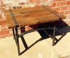 Rustic coffee tableThis is an example of true collaboration. The client had the wood, which was distressed and painted, sanded and sealed. We built the heavy duty frame to hold it all together. This table is approx. four feet by four feet.